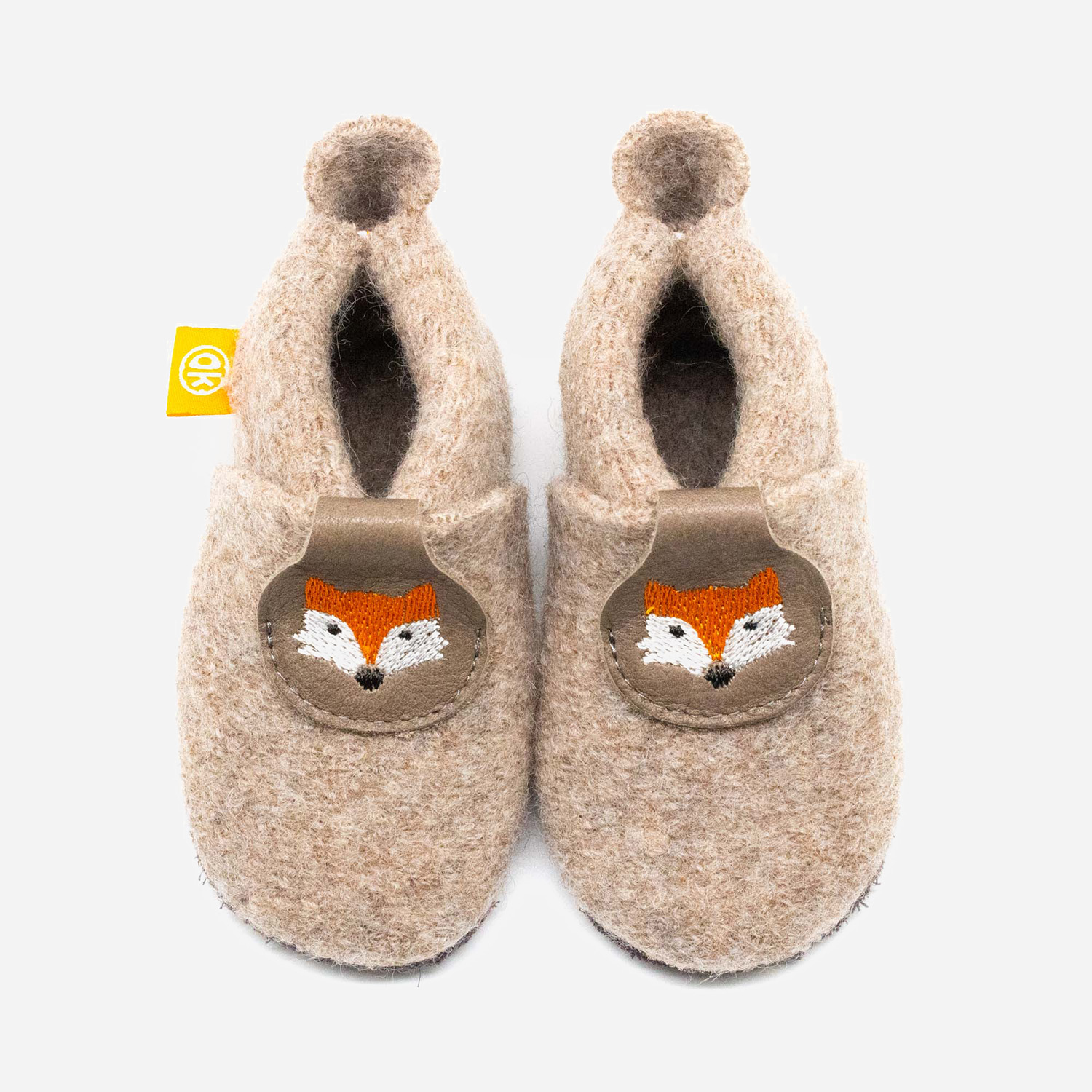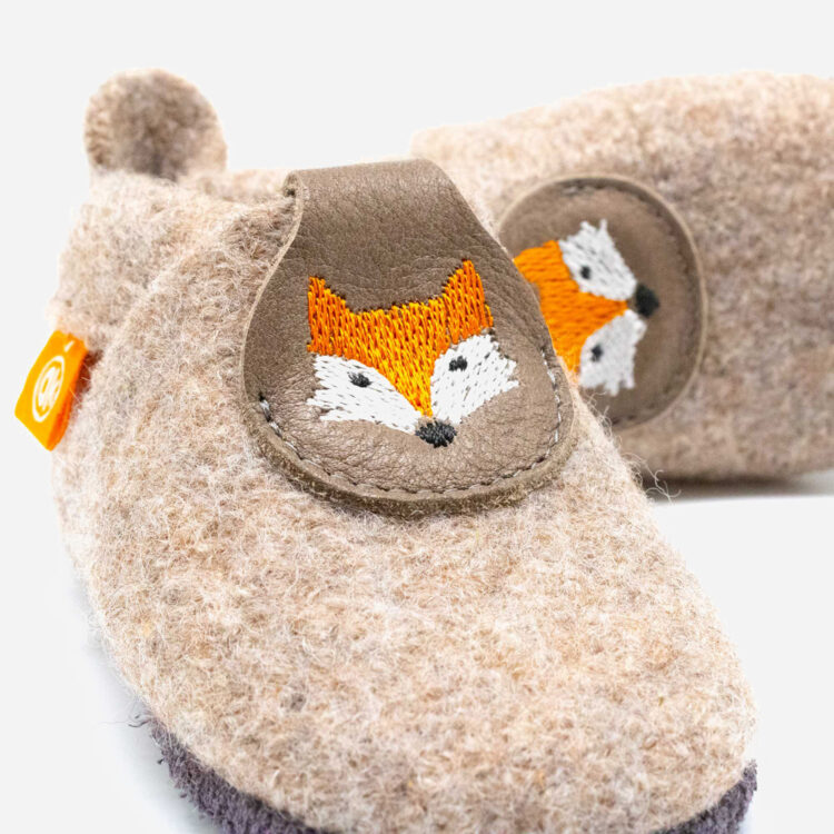 Children’s slippers made of 100% merino wool from Orangenkinder®: Cheeky & curious – but won’t steal any geese 🦊 The Orangenkinder® Poppies impress with their simple design and the lovely embroidered motifs on the flap.