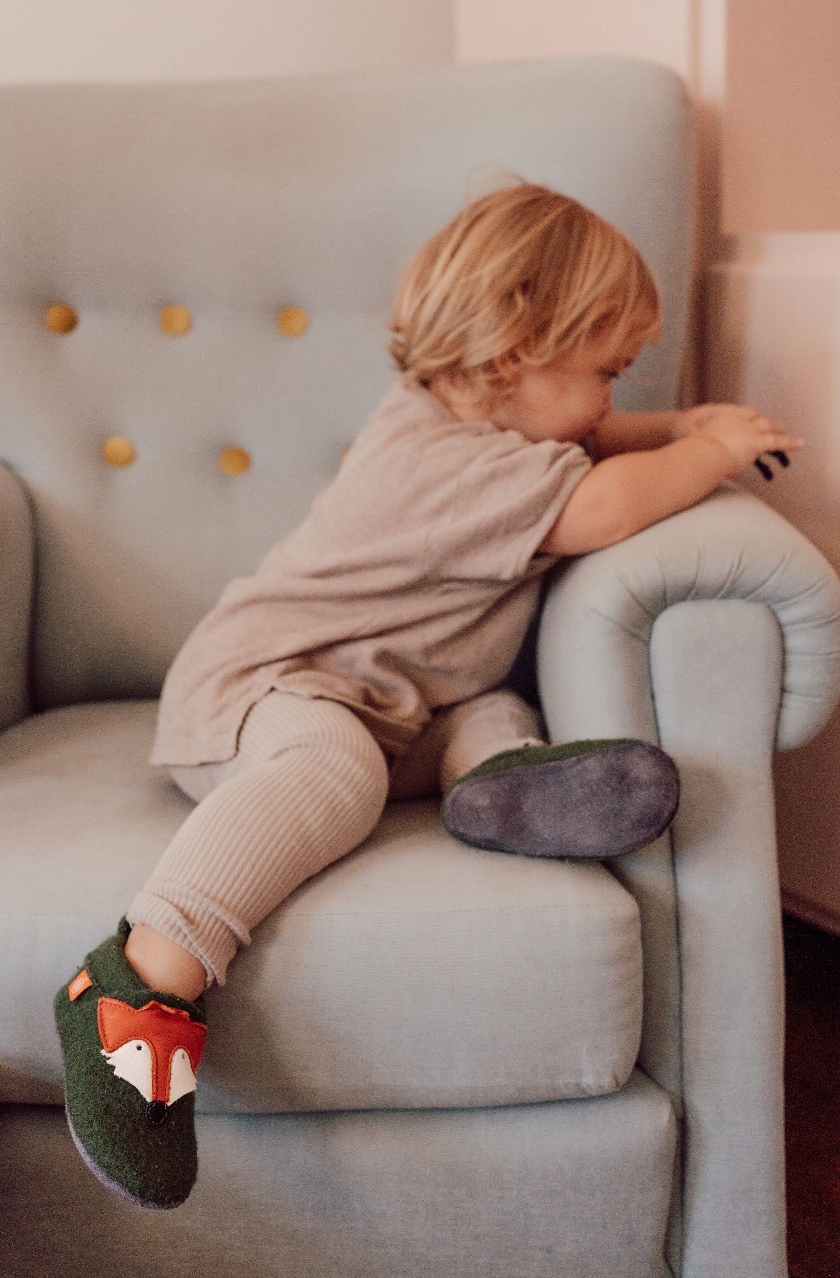 Children’s slippers made from 100% Merino wool by Orangenkinder®: Orangenkinder are cheeky & curious. Our little fox Franz is at least as much… if not cheekier. He’ll join you on your adventures & plan the next big prank with you every step of the way.