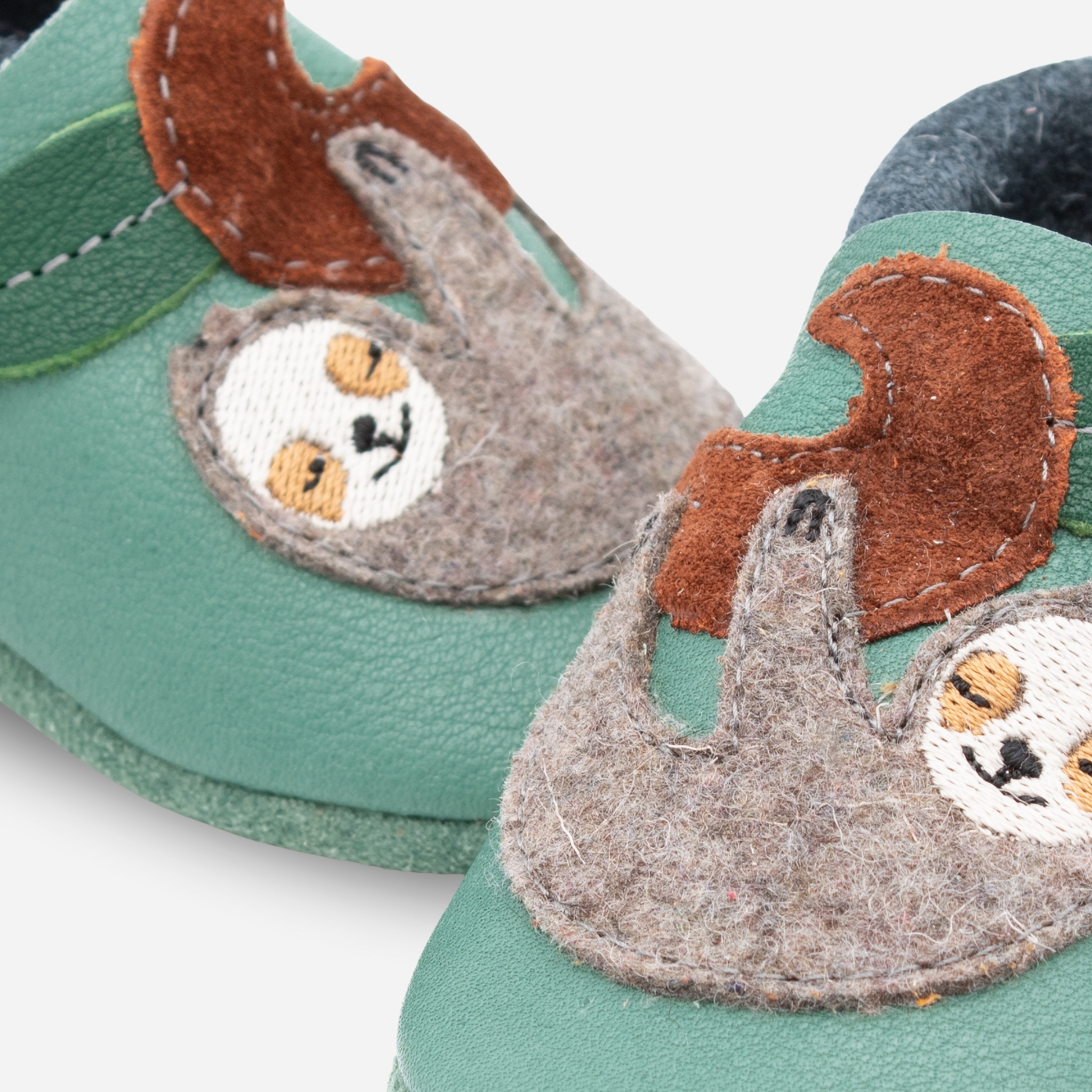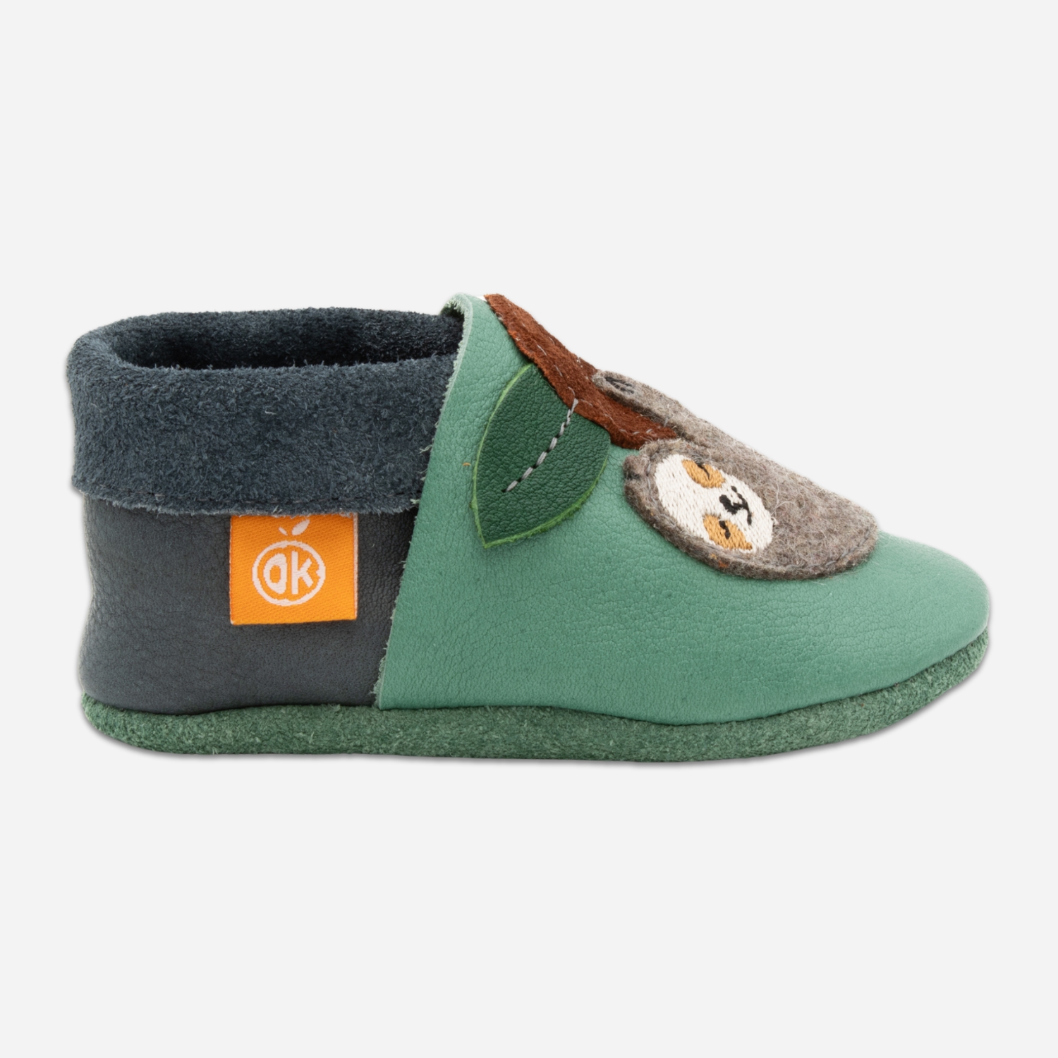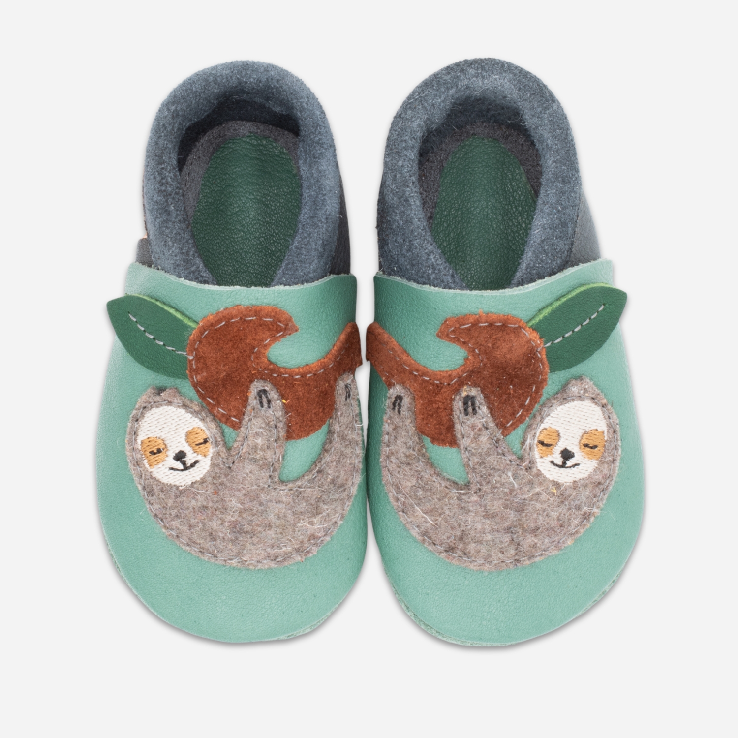 Our Orangenkinder® leather slippers “Pauli the Sloth” are lovingly handcrafted from breathable, vegetable-tanned organic leather. Whether as first crawling shoes, walking learning shoes or simply to protect small toes – they leave the feet enough space to grow and feel almost as free as barefoot.