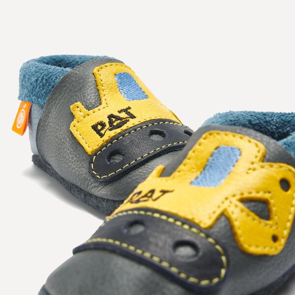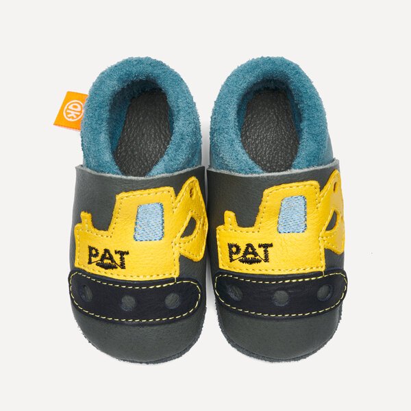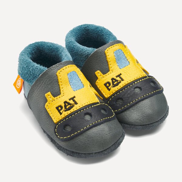 Kids’ slippers and crawling shoes from Orangenkinder®: Orangenkinder are sometimes busy on construction sites too. For the aspiring excavators among you. Your very own PAT Excavator. So you’re sure to succeed with every block tower. Dad will be happy too.