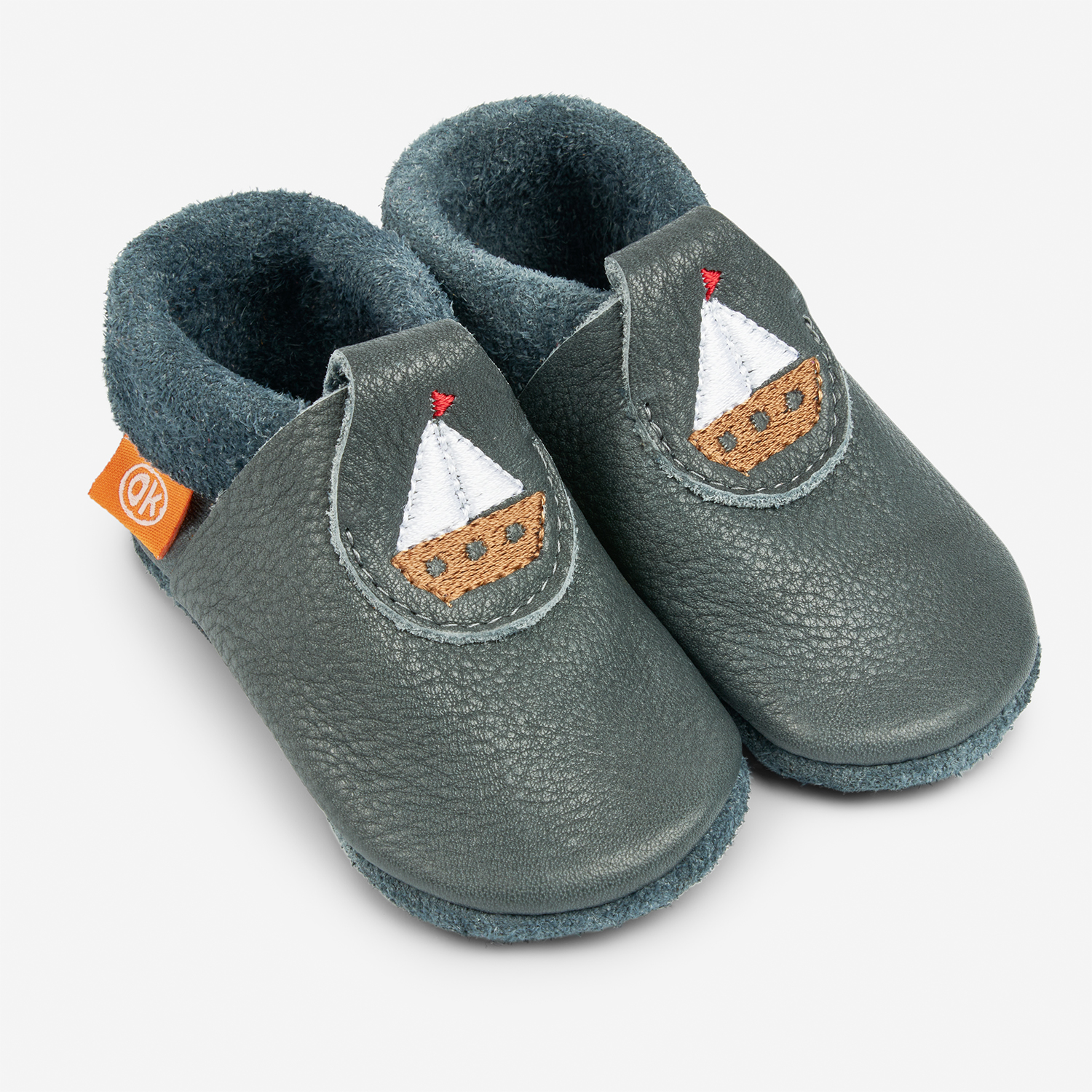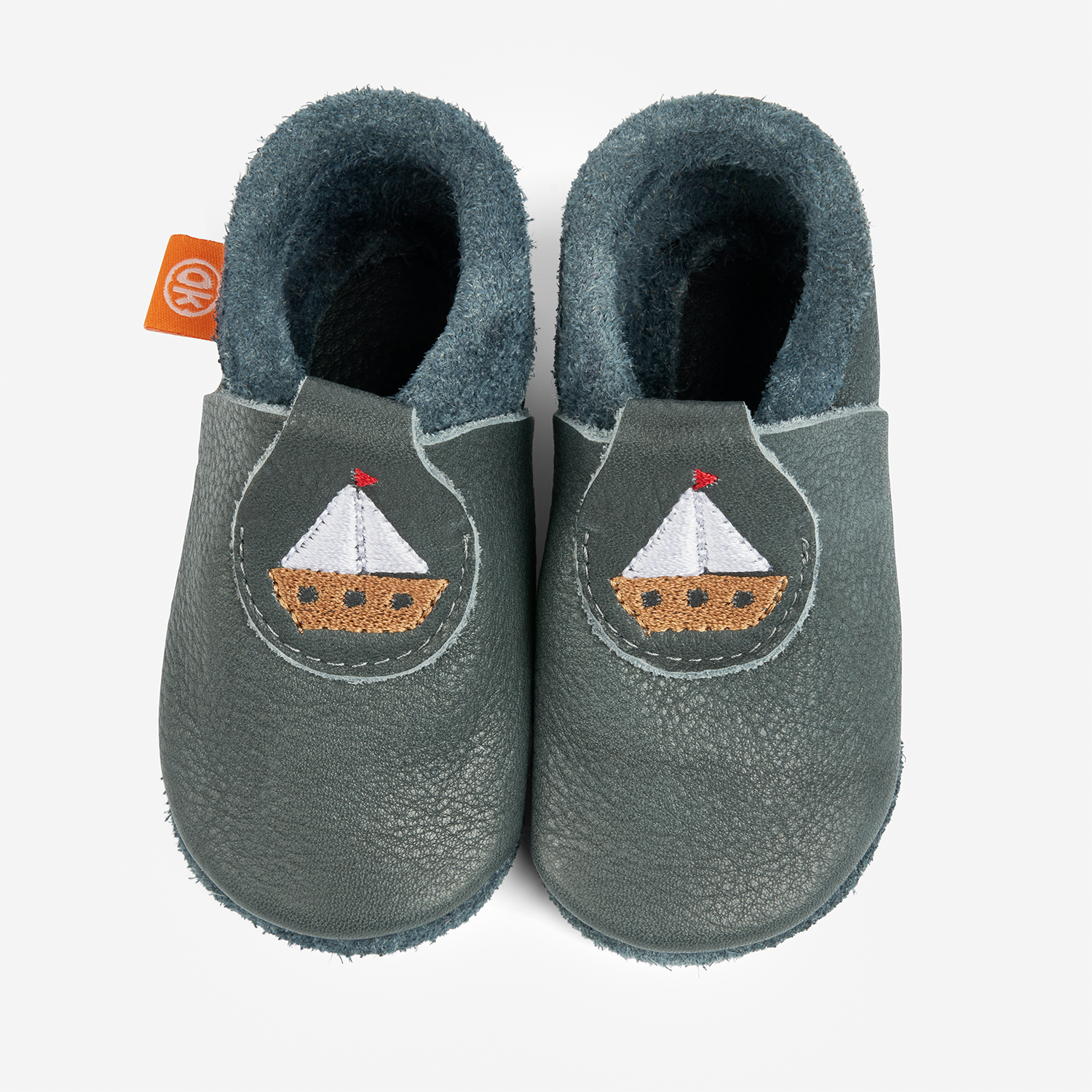 Our Orangenkinder® leather slippers “Skippy the Little Ship” are lovingly handcrafted from breathable, vegetable-tanned organic leather. Whether as first crawling shoes, as walking learning shoes or simply to protect small toes – they leave the feet enough space to grow and feel almost as free as barefoot.