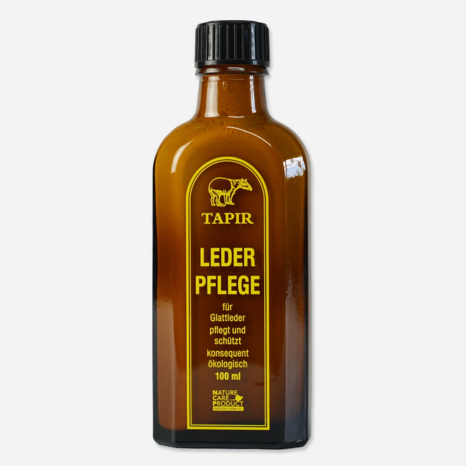 Lieferumfang : Die Tapir Leder-Pflege wird in einer 100ml Glasflasche ausgeliefert.
