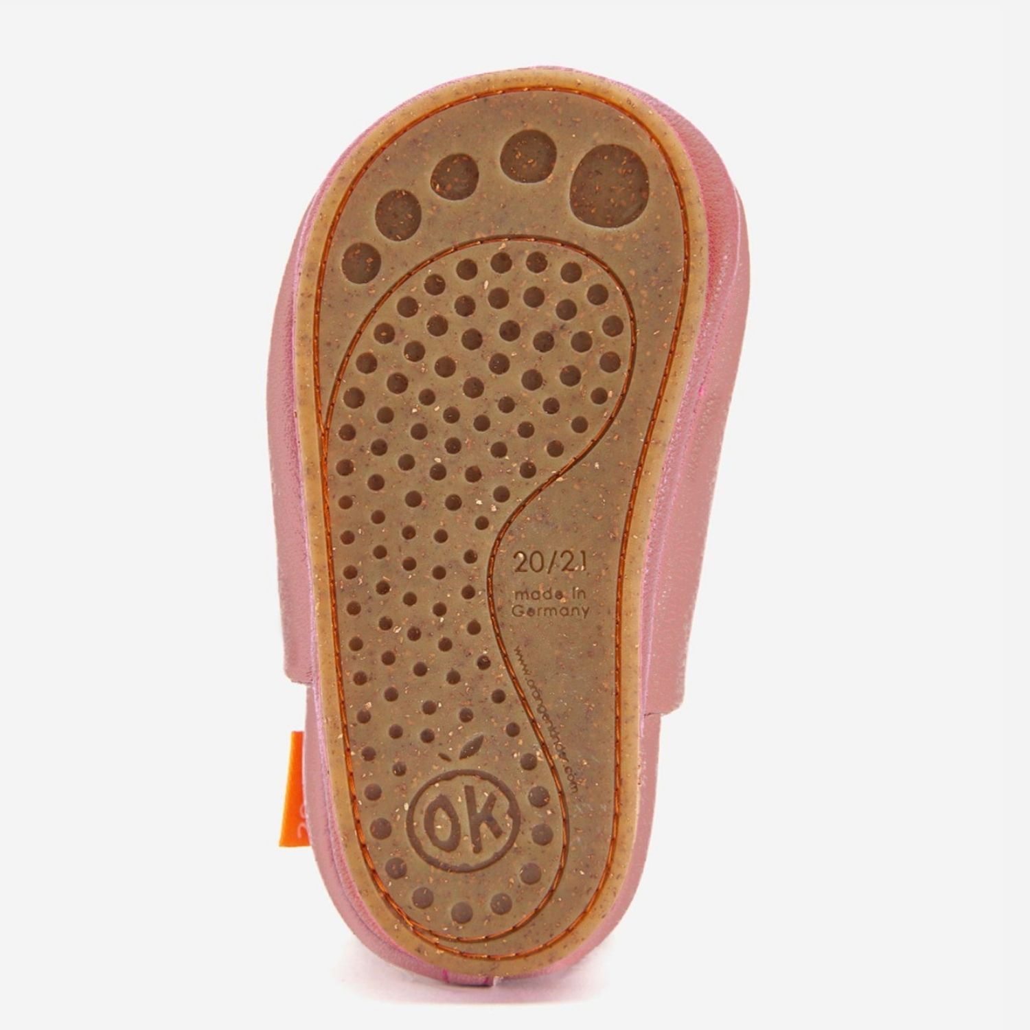 Unsere Orangenkinder® Kinder-Barfußsandale „AMIGO Ballerina“ wird aus atmungsaktivem, pflanzlich gegerbtem Bio-Nappaleder in liebevoller Handarbeit gefertigt. Die rutschfeste, flexible Sohle aus Gummi und recyceltem Kork macht sie zum perfekten Begleiter für kleine Abenteuer im Innenbereich und bei trockenem Wetter auch draußen.