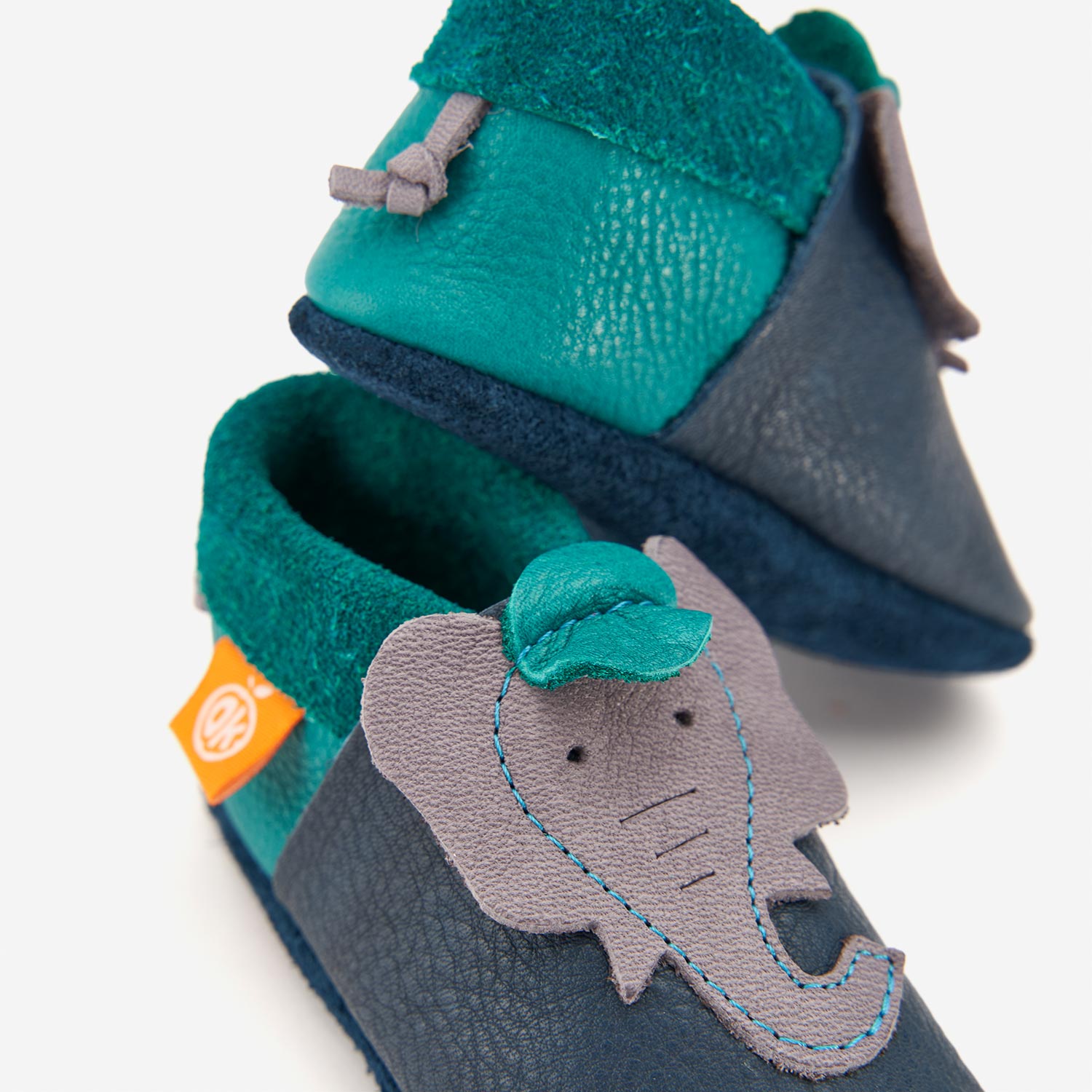 Kinder-Hausschuhe und Krabbelschuhe von Orangenkinder®: Ein großes Orangenkind – ganz sanft. Unser Elefantenjunge Jonathan ist nicht nur enorm umgänglich, sondern auch fürsorglich. Bei all deinen Schritten hält er Dir stets den Rücken frei. Denn ein Elefant vergisst nie. Große Schritte, kleine Schritte, Stampfer und Trampeltiere – er ist dabei.