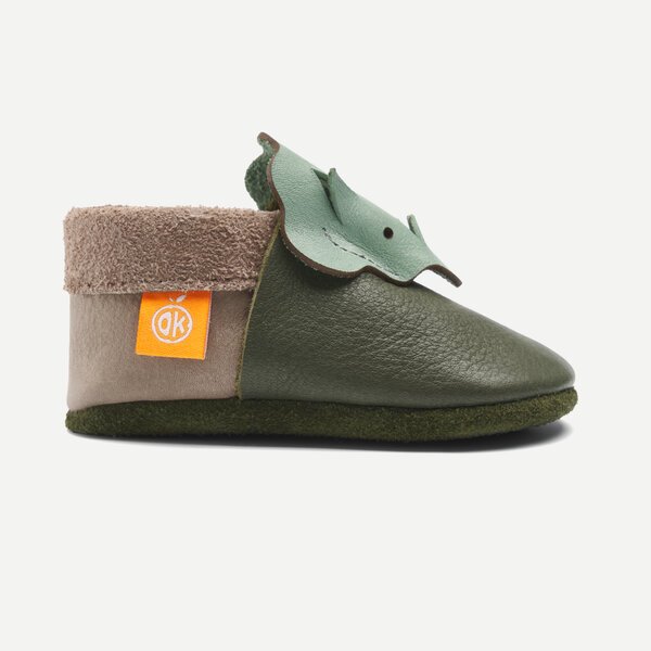 Unsere Orangenkinder® Leder-Hausschuhe „Dino 3D“ werden liebevoll aus atmungsaktivem, pflanzlich gegerbtem Bio-Leder von Hand gefertigt. Ob als erste Krabbelschuhe, als Laufenlernschuhe oder einfach zum Schutz kleiner Zehen – sie lassen den Füßen genug Platz zum Wachsen und fühlen sich fast so frei an wie barfuß.