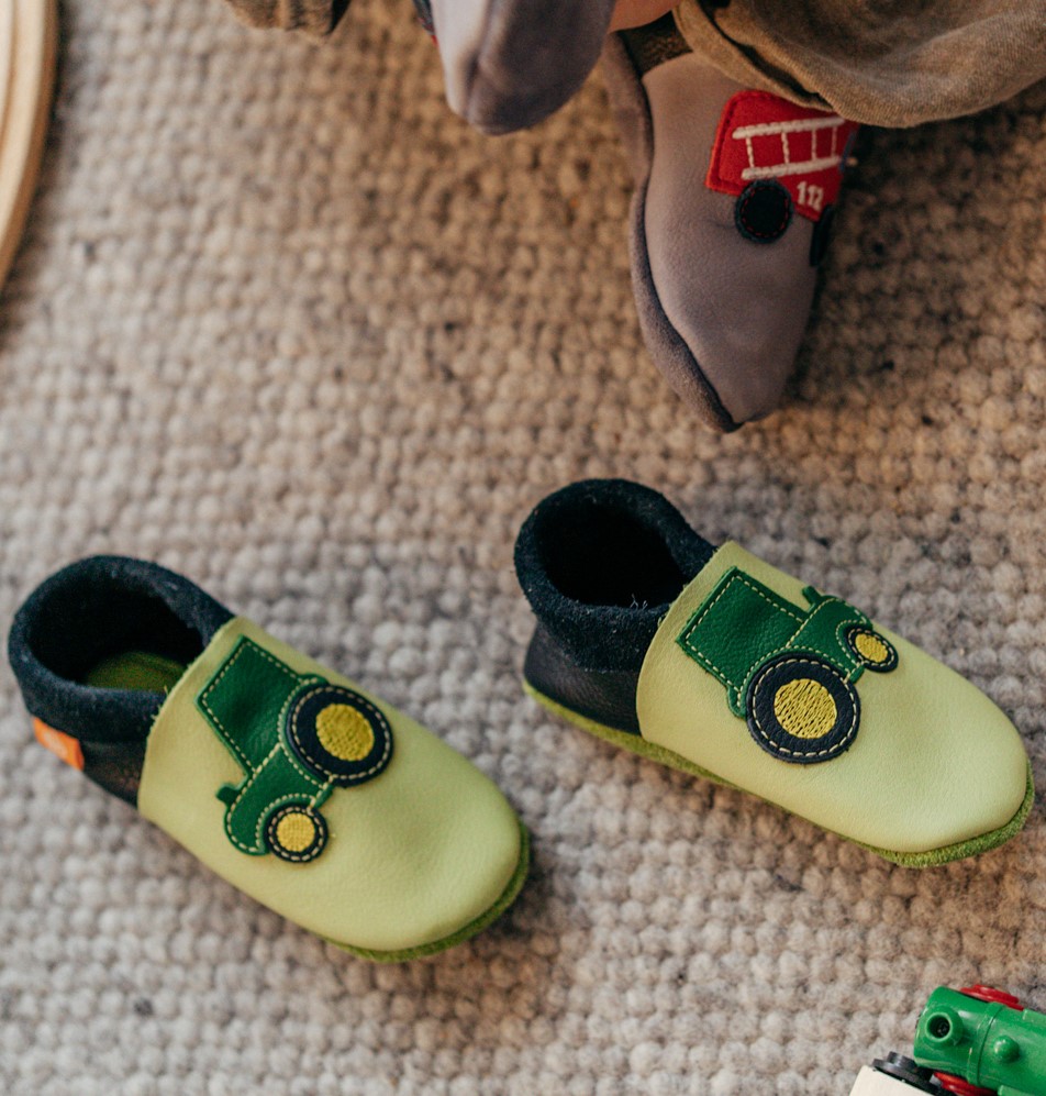 Unsere Orangenkinder® Leder-Hausschuhe „Herbert der Trecker“ werden liebevoll aus atmungsaktivem, pflanzlich gegerbtem Bio-Leder von Hand gefertigt. Ob als erste Krabbelschuhe, als Laufenlernschuhe oder einfach zum Schutz kleiner Zehen – sie lassen den Füßen genug Platz zum Wachsen und fühlen sich fast so frei an wie barfuß.