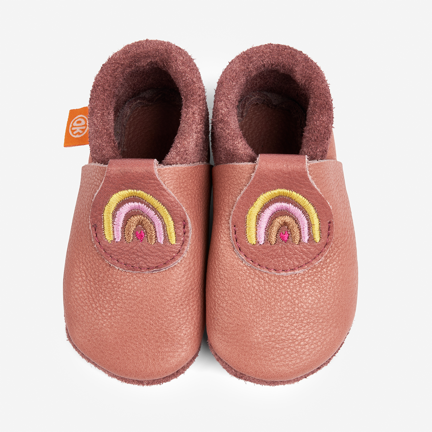 Unsere Orangenkinder® Leder-Hausschuhe „Reginchen der Regenbogen“ werden liebevoll aus atmungsaktivem, pflanzlich gegerbtem Bio-Leder von Hand gefertigt. Ob als erste Krabbelschuhe, als Laufenlernschuhe oder einfach zum Schutz kleiner Zehen – sie lassen den Füßen genug Platz zum Wachsen und fühlen sich fast so frei an wie barfuß.