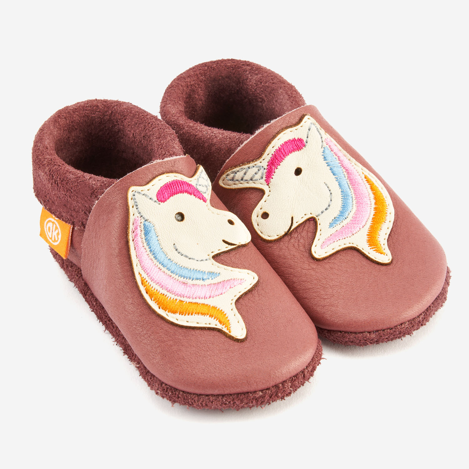 Unsere Orangenkinder® Leder-Hausschuhe „Stella das Einhorn“ werden liebevoll aus atmungsaktivem, pflanzlich gegerbtem Bio-Leder von Hand gefertigt. Ob als erste Krabbelschuhe, als Laufenlernschuhe oder einfach zum Schutz kleiner Zehen – sie lassen den Füßen genug Platz zum Wachsen und fühlen sich fast so frei an wie barfuß.