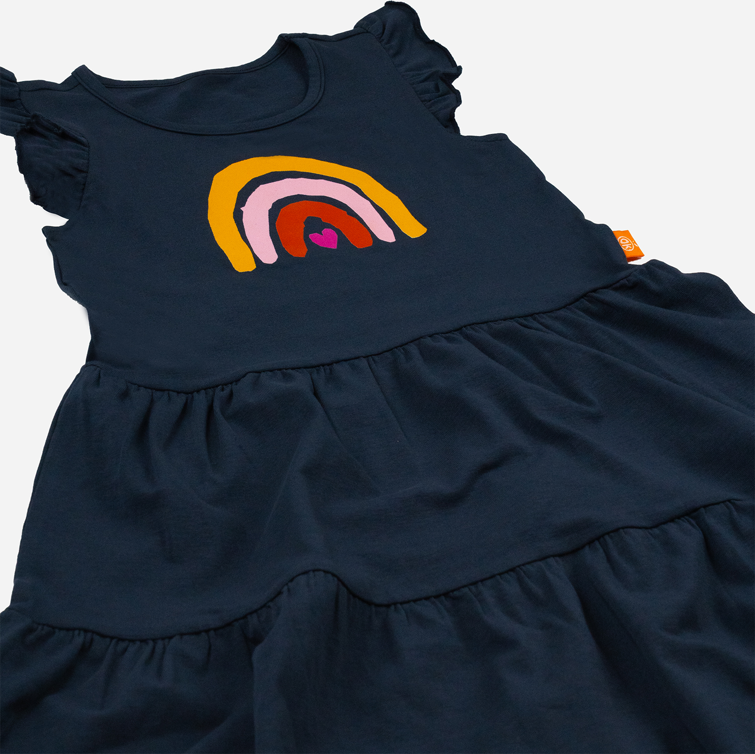 Kinderkleidung von Orangenkinder® –  Mit Reginchen, unserem fröhlichen Regenbogen, wird die Kleidung für Babys und Kleinkinder kunterbunt. Gefertigt aus reinem Baumwolljersey überzeugt unser Kleid Regenbogen mit süßem Look und herrlich weichem Tragegefühl.