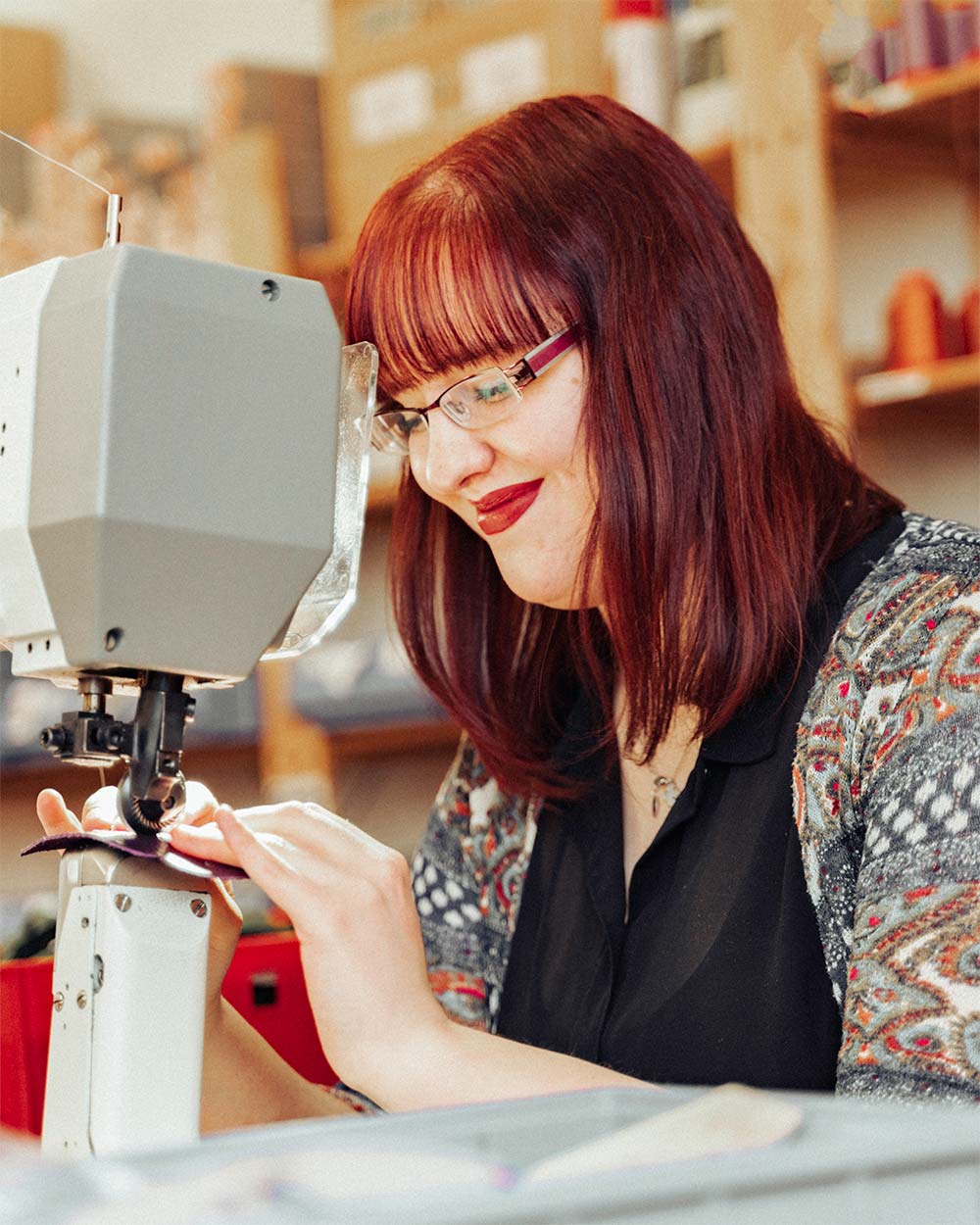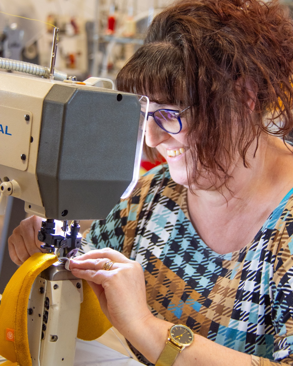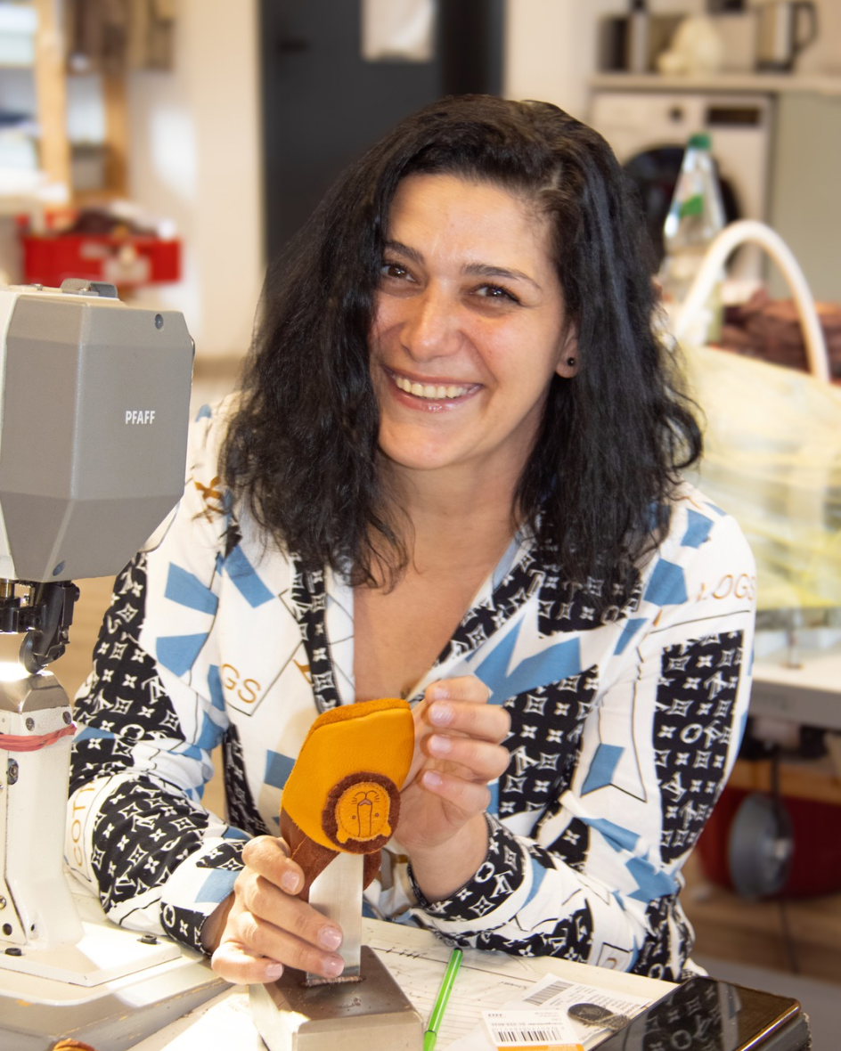 Das ist Banu, die immer gut gelaunt und konzentriert an der Nähmaschine sitzt. Sie kommt aus Nürnberg zu uns in die Werkstatt und näht laut eigener Aussage für ihr Leben gern. Also die perfekte Bereicherung für unser Team.