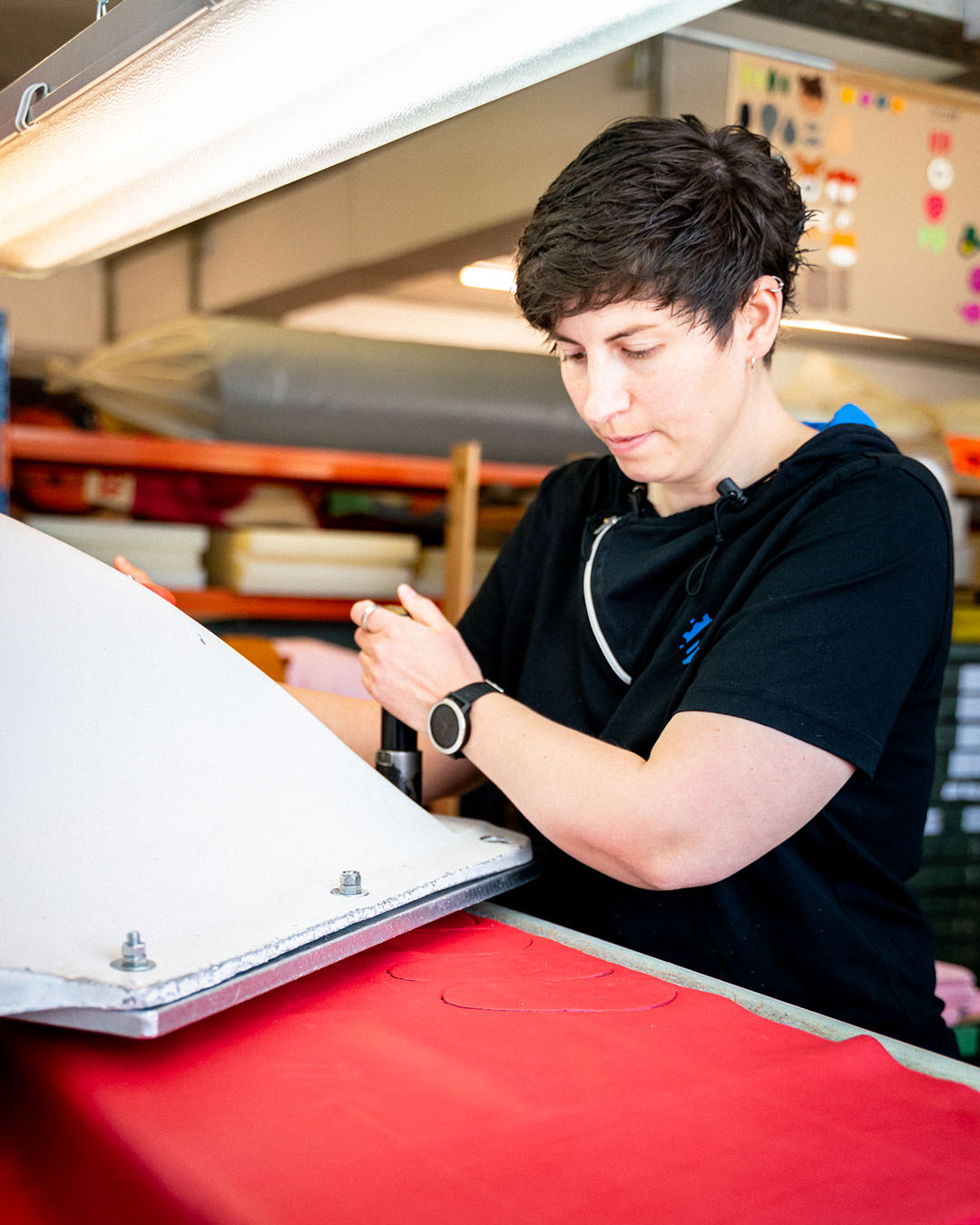 Das ist Petra und sie ist schon seit den frühen Anfängen (Eintritt ins Team: Mai 2005!) mit dabei. Sie hat in den vielen Jahren alle möglichen Stationen der Kinderschuhproduktion hier bei uns in Oberreichenbach kennengelernt. 🇩🇪 Sie ist deshalb multifunktional unterwegs: Mal bedient sie die Stanze wie hier im Bild, mal näht sie, mal packt sie. Sie hilft immer dort mit wo Not am Mann, bzw. an der Maschine ist!