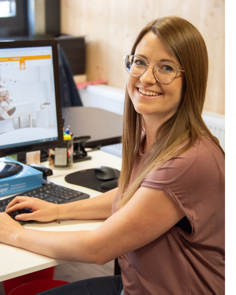 Das ist Melanie – sie ist seit März 21 im Orangenkinderteam und kümmert sich darum, dass in der Buchhaltung alles korrekt ist und nimmt eure Fragen und Anrufe gerne entgegen. 📞 Am meisten gefällt ihr die tolle Kollegschaft und die bunte Vielfalt der Naturleder, die wir hier bei Orangenkinder® verarbeiten.